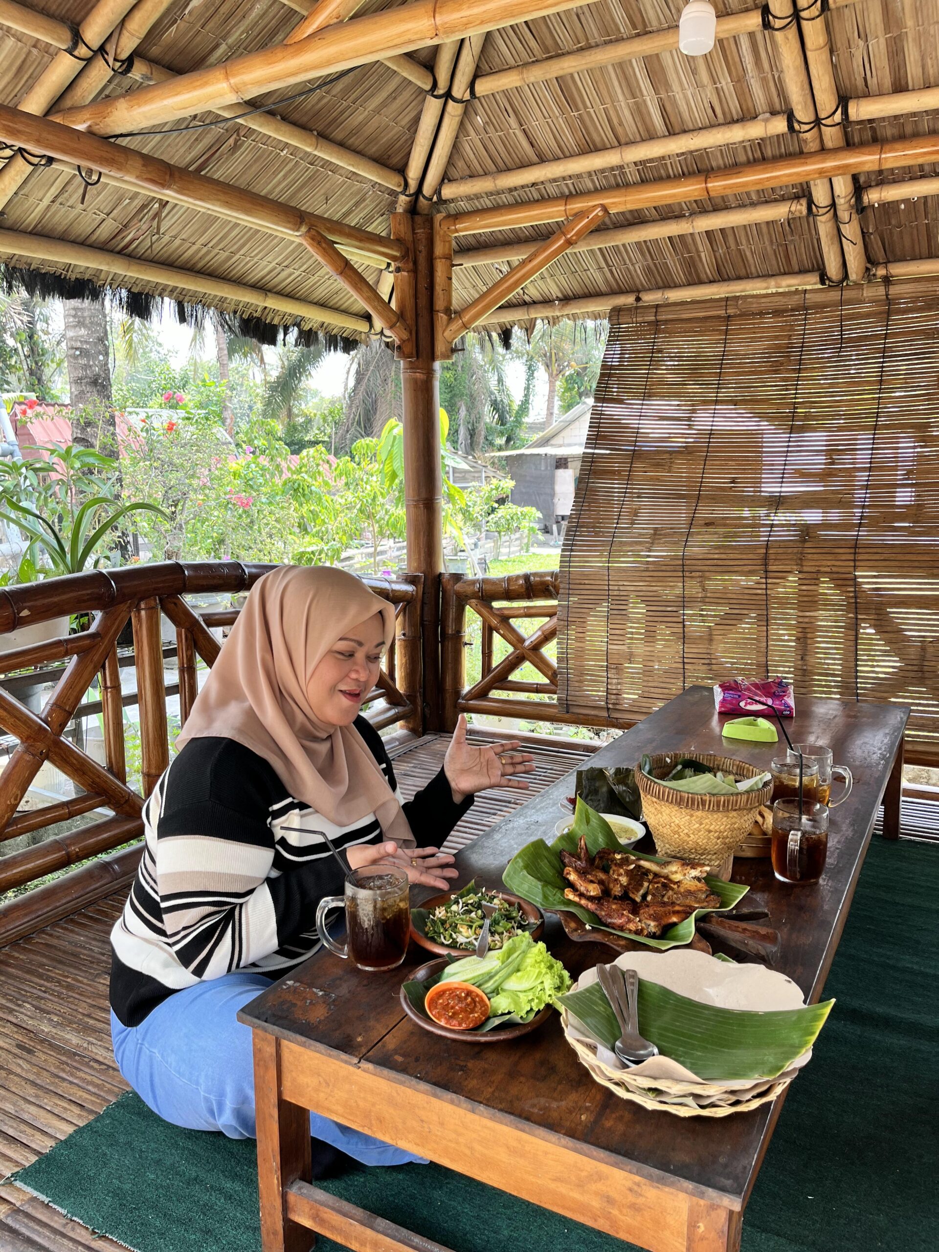Setelah puas menikmati Candi Prambanan, kita melanjutkan perjalanan ke rumah makan Ayam Panggang Mbah Mo untuk makan siang. Ayam panggangnya juara, pedasnya pas dan dagingnya empuk, bikin semua orang betah makan santai sambil ngobrol.