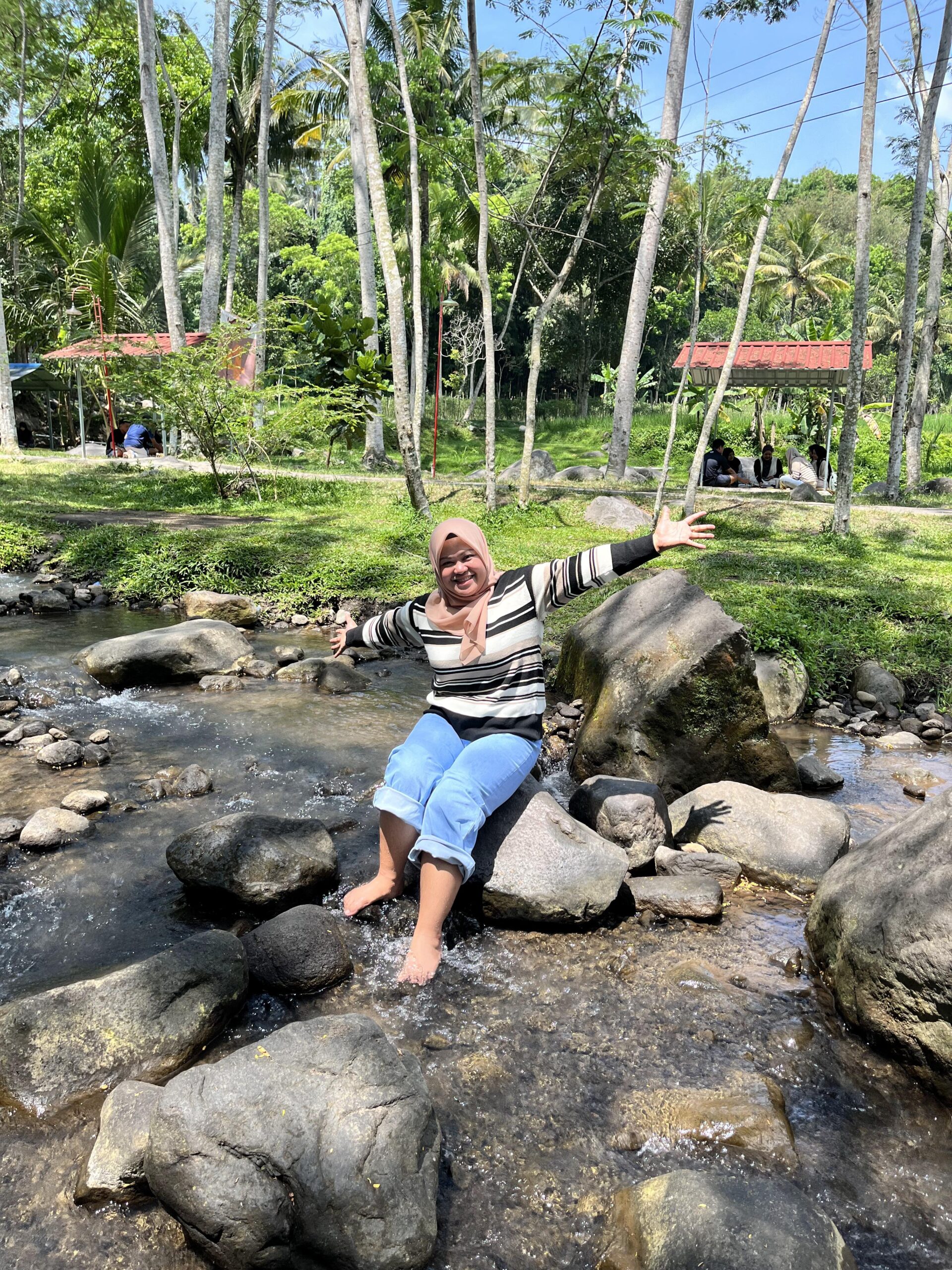 Dari sana, kita langsung menuju Ledok Sambi. Di sini, Kak Maya bisa bersantai menikmati suasana alam yang asri, duduk-duduk di pinggir sungai sambil merendam kaki. Nggak lupa, kami mencoba seru-seruan naik flying fox yang cukup menantang, bikin adrenalin naik!