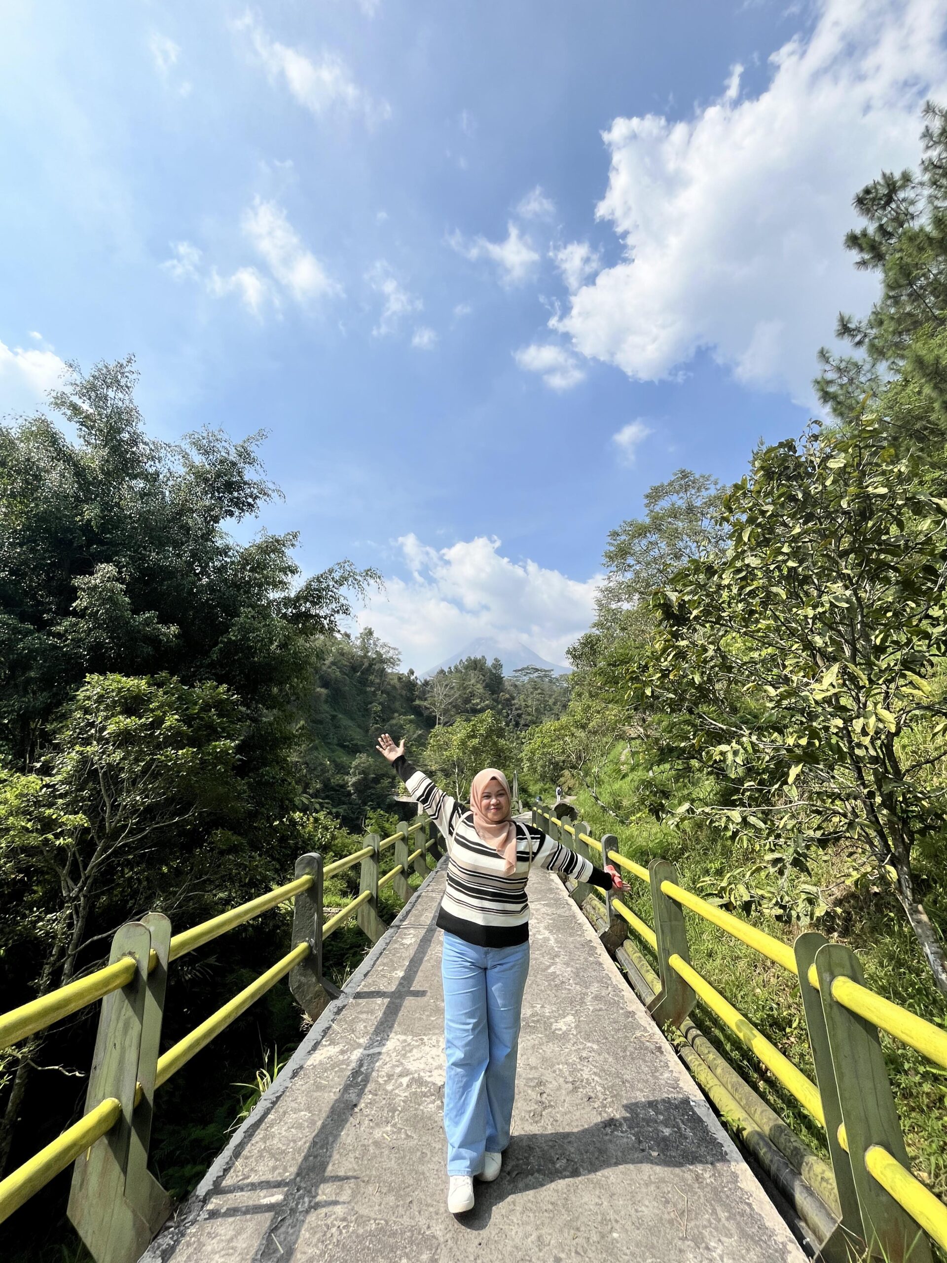 Lanjut ke Plunyon Kalikuning, tempat yang nggak kalah cantik. Di sini, Kak Maya bisa menikmati pemandangan Gunung Merapi yang super keren dan masih terlihat aktif. Semuanya disambut dengan angin sejuk yang bikin betah.