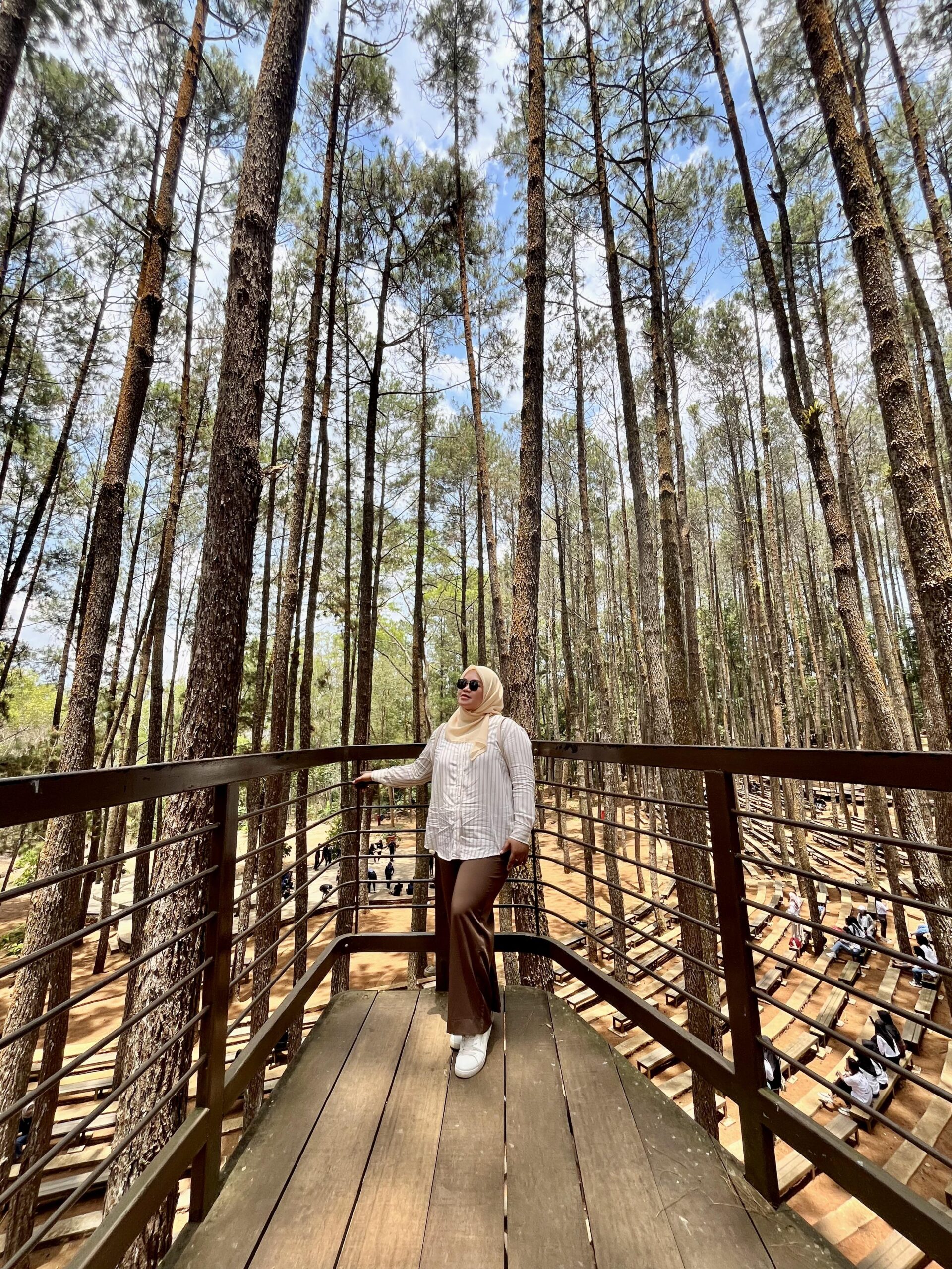 Kemudian, perjalanan dilanjutkan ke Seribu Batu Songgo Langit, tempat yang penuh dengan spot foto menarik di tengah hutan pinus. Kak Maya puas banget bisa menikmati keindahan alam sambil berfoto-foto seru.